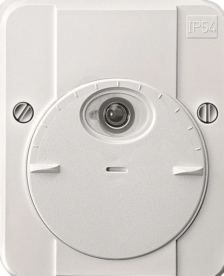 Argus -valorele viiveellä 2300W/VA pinta-asennukseen IP54. Enimmäiskuormitus 10A. Säädettävä luksiarvo 3–2000 luksia levyllä, jota käännetään haluttuun asentoon