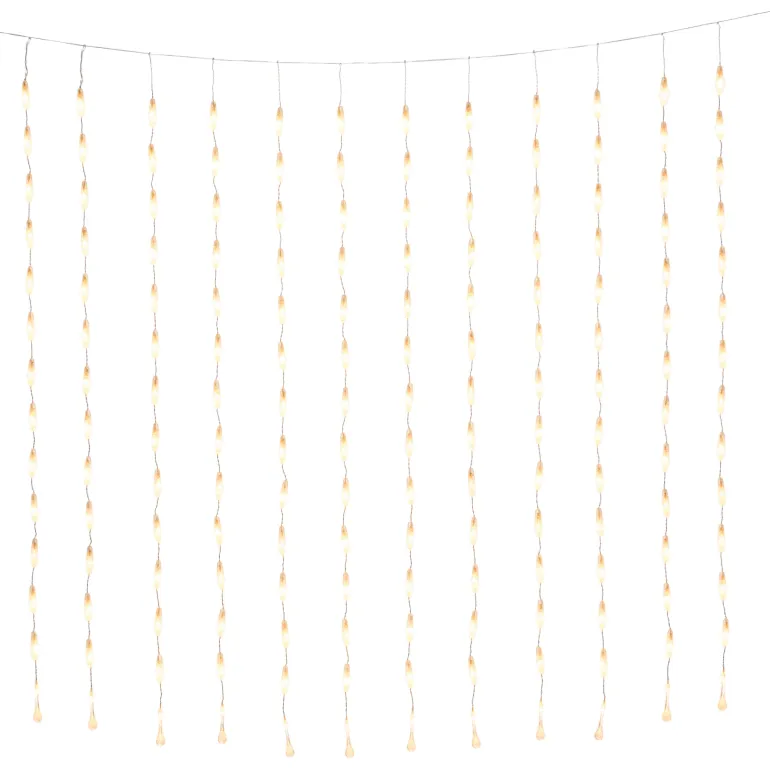 Konstsmide 4051-803 on valosarja, jossa on 140 LEDiä (pisaramuoto, valon väri amber), 140×120 cm. 30V/IP44.