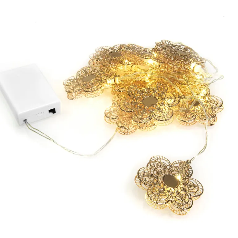 Konstsmide 3144-603 on valosarja 10 metallisella kukalla (kupari). Lämmin valkoinen LED. 3xAA.