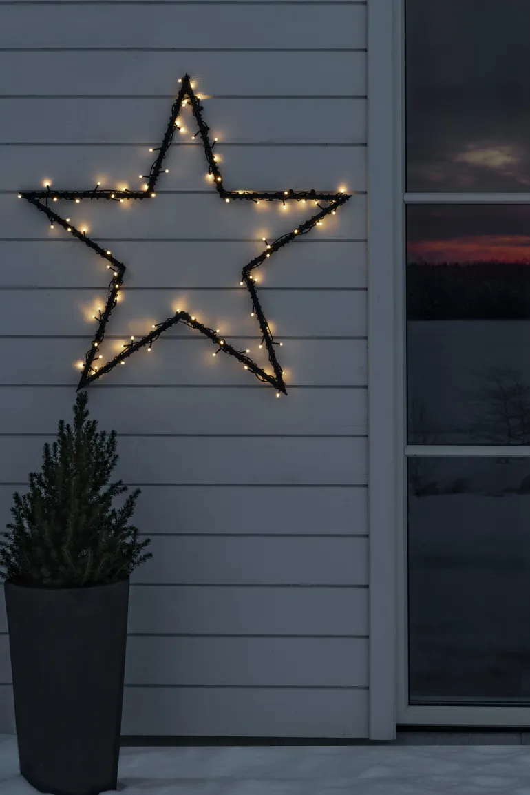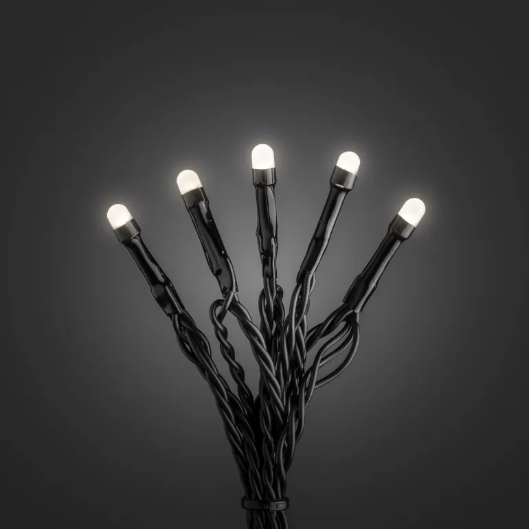 Konstsmide 3810-100 on valosarja, jossa on 40 lämpimän valkoista LEDiä (huurrettu). Musta johto.