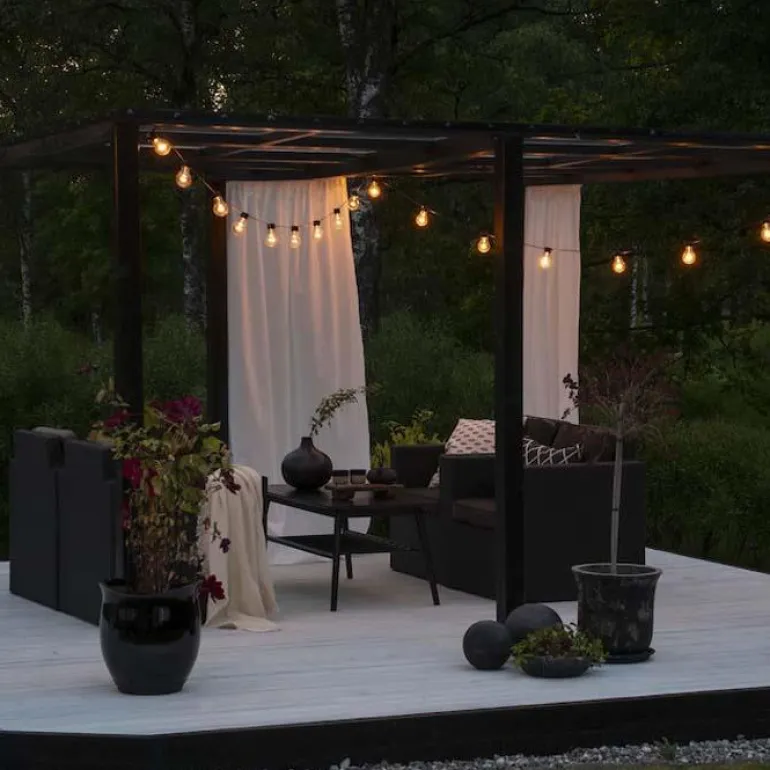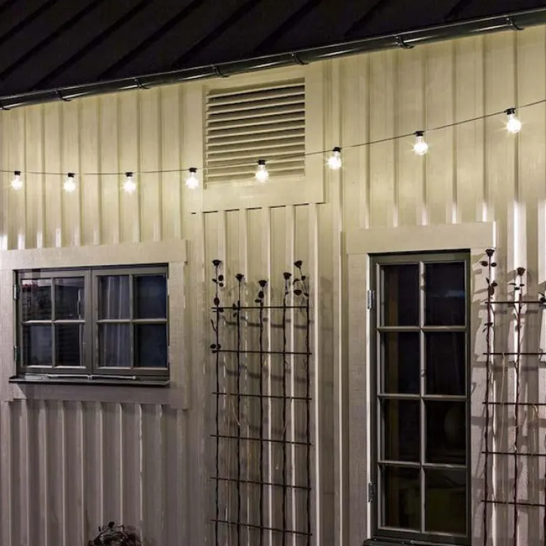 Valoköynnös, jossa on 20 lämpimän meripihkan väristä lamppua. Valoköynnös on IP44-luokiteltu, mikä tarkoittaa, että se sopii sisä- ja ulkokäyttöön.