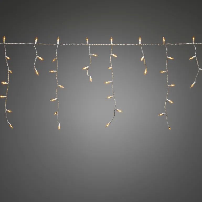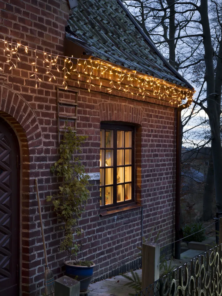 Konstsmide 2771-802 on valosarja, jossa on 200 LEDiä (valon väri amber). Valkoinen johto 31V/IP44.