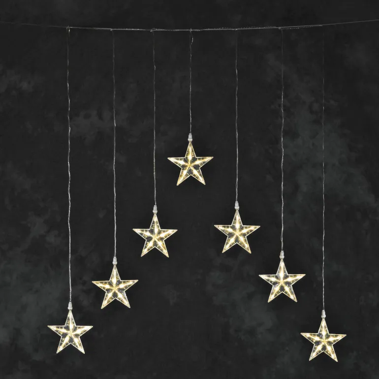 Konstsmide 1243-103 on valosarja, jossa on 7 lämpimän valkoista LED-tähteä. 24V/IP44.