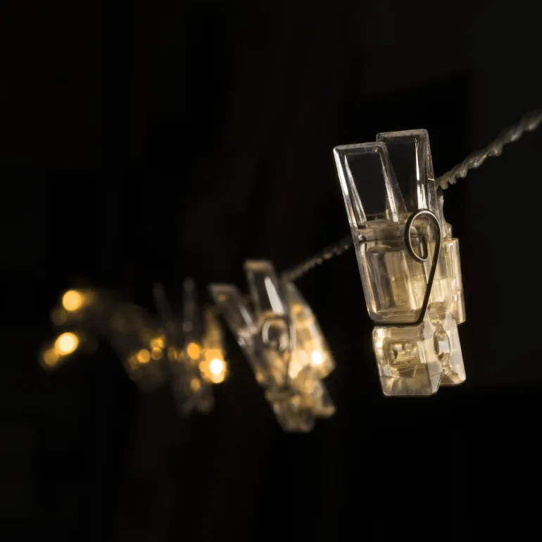 Konstsmide 1451-103 on valosarja, jossa on 12 LED-valokuvaklipsiä. Läpinäkyvä kaapeli, IP20.