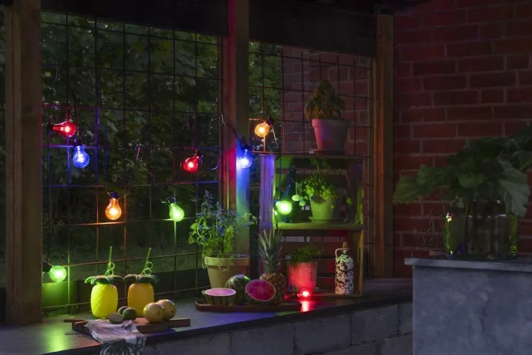 Valosarja, joka antaa lämpimän valkoisen tai monivärisen valon. Valosarjan pituus on 1000 cm ja se on varustettu 10 lampulla.