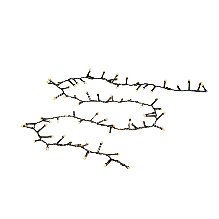 Konstsmide 3870-830 on valosarja, jossa on 1000 LEDiä (cluster, huurrettu, valon väri amber). Musta johto, 30V/IP44.