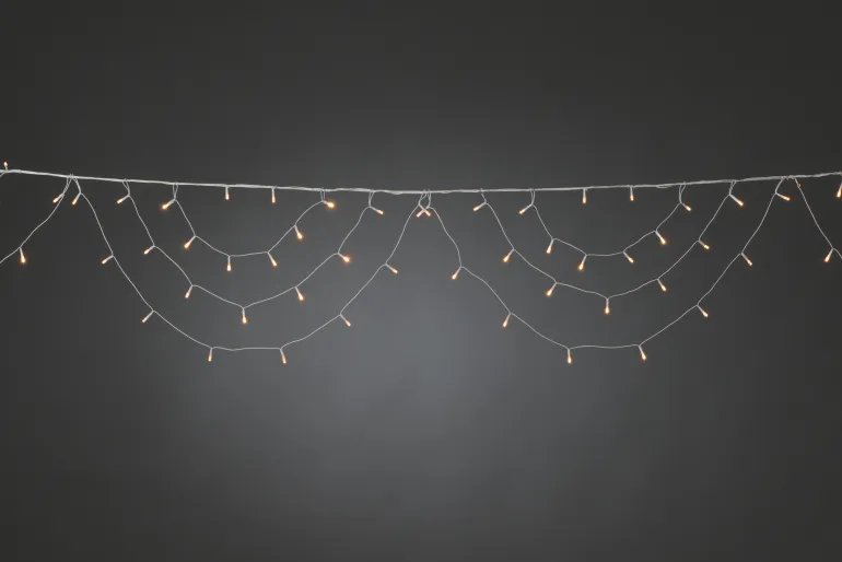 Konstsmide 2778-802 on valosarja 3 valokaarella (184 LEDiä, valon väri amber). 24V/IP44. Valosarjan pituus 5,6 m (liitäntäjohdon pituus 10 m/kokonaispituus 15,6 m).