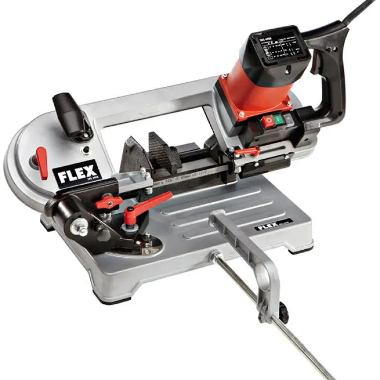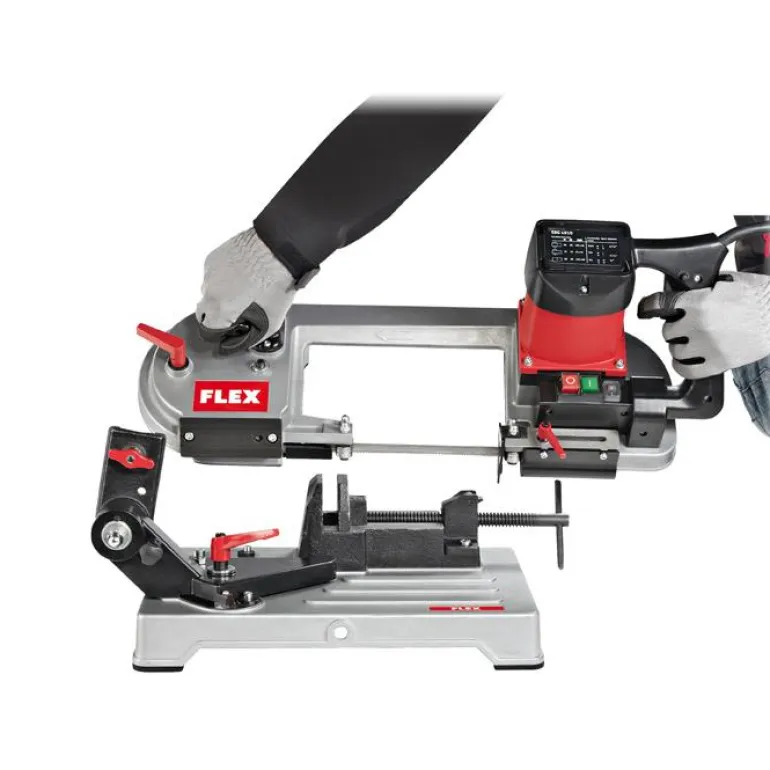 FLEX SBG 4910 on vannesaha, 850 W, jossa on kallistuva sahausyksikkö, kaksi vannenopeutta putkien ja profiilien sahaukseen.