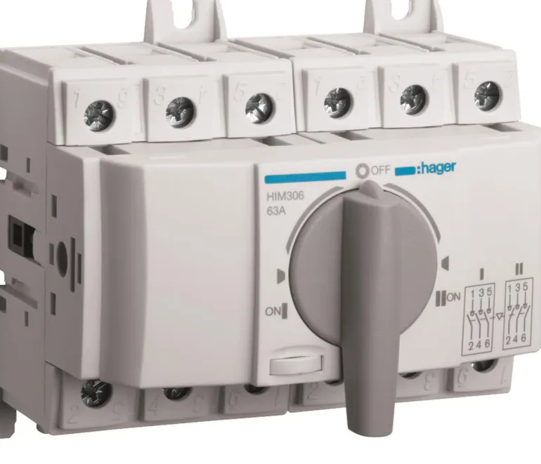 Modulaariset varavirtaliittimet voidaan asentaa kaikkiin vakiokoteloihin ja kaappeihin. Kytkimet asennetaan DIN-kiskoon tai asennuslevyyn. Laitteen kahva voidaan lukita 0-asentoon.