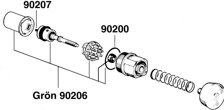 PRESTO WS 90206 on vihreällä merkitty varaosasarja PRESTO-huuhteluventtiilille urinaaliin WS 31001/701.
