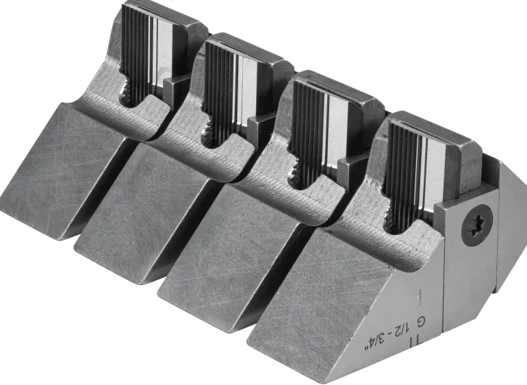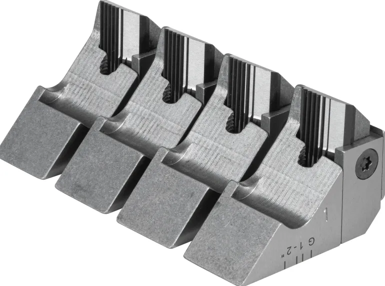 Leikkuuteräjärjestelmä ja pidike putkikierteelle G lieriömäinen oikea, ISO 228-1 (DIN 259, BSPP), G 1-2″. REMSin uudelleen teroitettava tangentiaalinen leikkuuteräjärjestelmä optimaalisella leikkausgeometrialla varmistaa helpon aloitus- ja kierreleikkauksen ja puhtaat kierteet. Leikkuuteräjärjestelmä kiinnitetään erityiseen pidikejärjestelmään. Leikkuuterät ja pidikkeet muodostavat leikkuusarjan. HSS-leikkuuterät soveltuvat vaikeasti työstettäville materiaaleille > 500 N/mm² (MPa).