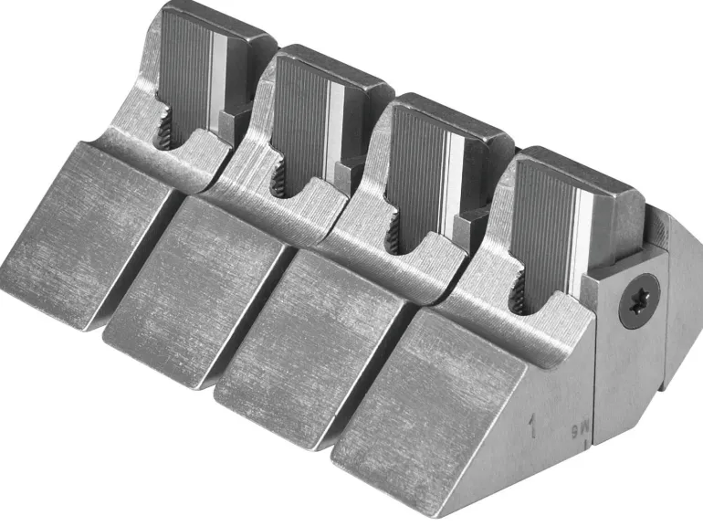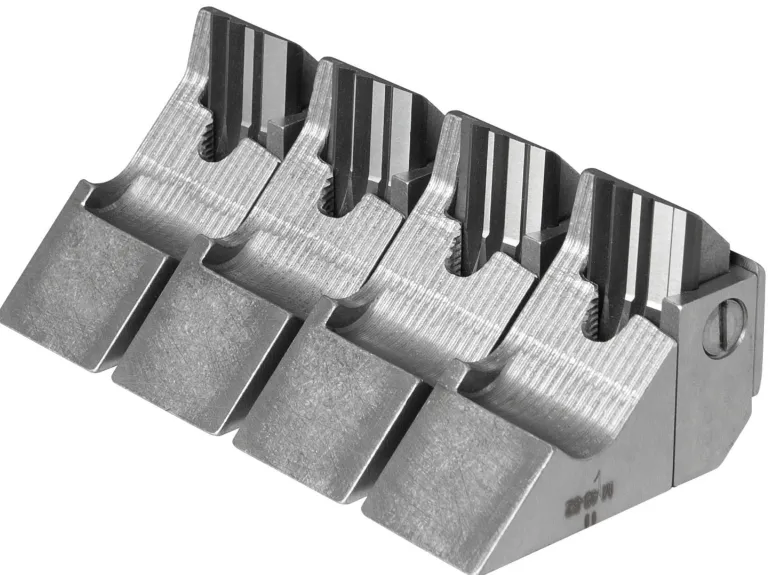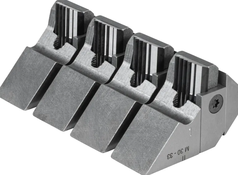 Leikkuuteräjärjestelmä ja pidike metrikokoiselle pulttikierteelle, ISO 261 (DIN 13), M 6. REMSin uudelleen teroitettava tangentiaalinen leikkuuteräjärjestelmä optimaalisella leikkausgeometrialla varmistaa helpon aloitus- ja kierreleikkauksen ja puhtaat kierteet.