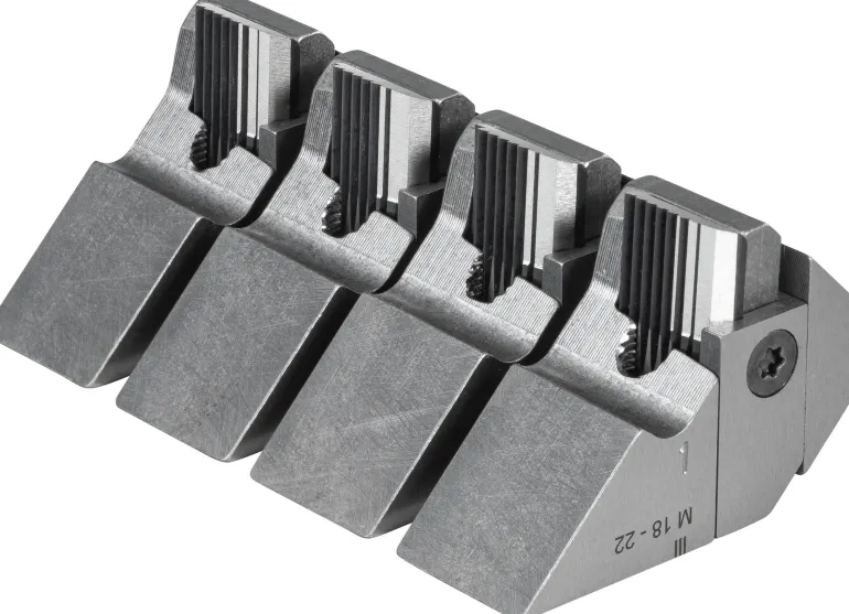 Leikkuuteräjärjestelmä ja pidike, kierre M raudoitusteräkselle, ISO 261 (DIN 13), M 24-27. REMSin uudelleen teroitettava tangentiaalinen leikkuuteräjärjestelmä optimaalisella leikkausgeometrialla varmistaa helpon aloitus- ja kierreleikkauksen ja puhtaat kierteet. Leikkuuteräjärjestelmä kiinnitetään erityiseen pidikejärjestelmään. Leikkuuterät ja pidikkeet muodostavat leikkuusarjan. HSS-leikkuuterät soveltuvat vaikeasti työstettäville materiaaleille > 500 N/mm² (MPa).