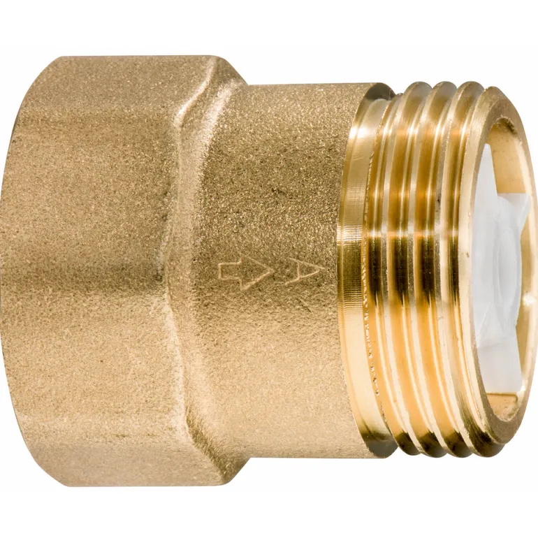 Messinkinen vastaventtiili 1″AG x 1″IG -liitäntäkierteellä. Puutarhapumpuille ja automaattisille talousvesijärjestelmille.