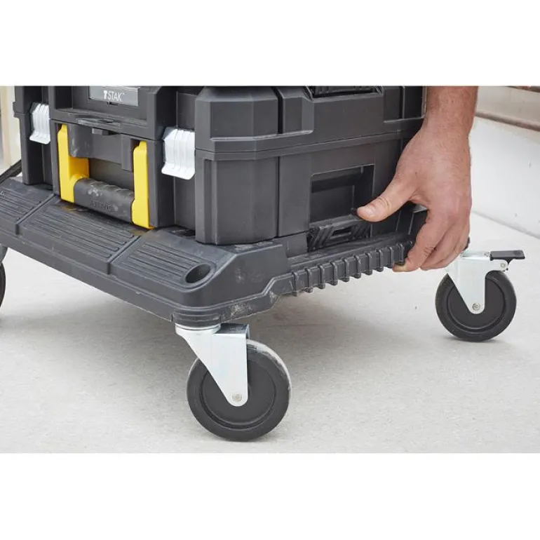 TSTAK FATMAX -moduulijärjestelmän vaunu. TSTAK®-säilytysjärjestelmän helppoon siirtämiseen. Jämerät ja lukittavat pyörät. Rakenna oma säilytysjärjestelmäsi, joka on muokattu juuri sinua ja työtäsi varten. 100 kg:n kuormankantokyky.