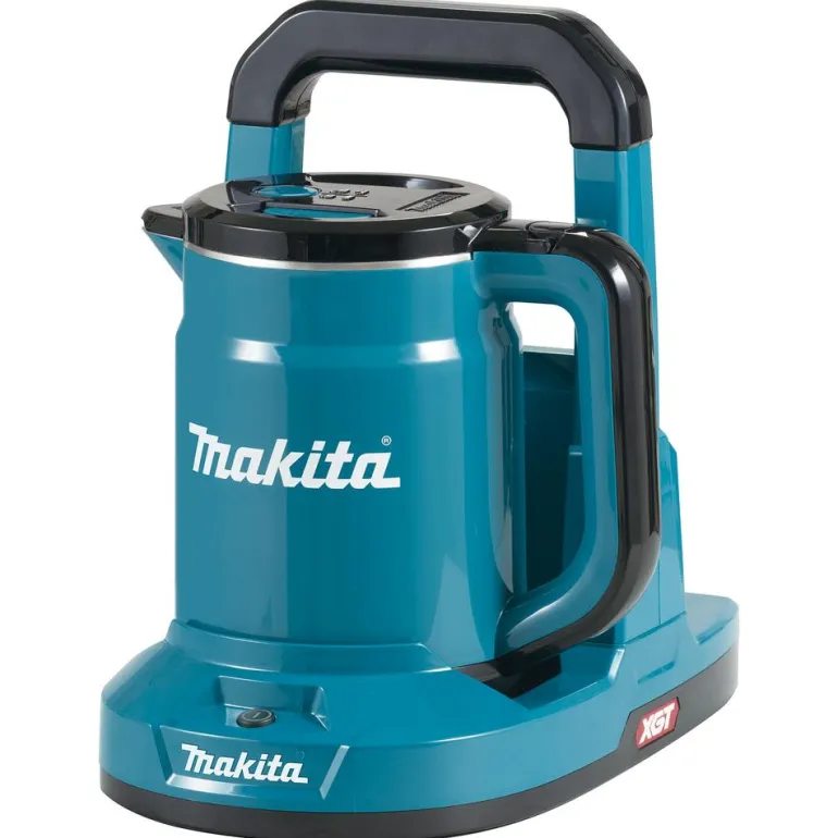 Kompakti akkukäyttöinen vedenkeitin (XGT® 40 V) kevyellä rakenteella. Kiehumisaika n. 0,8 litralle vettä: 8 minuuttia (23 °C -> 100 °C) ja 9 minuuttia (10 °C -> 100 °C). Kätevä ympäristöihin, joissa pistorasiaa ei ole saatavilla. Vedenkeitin lopettaa kiehumisen automaattisesti, kun joko vesisäiliö tai koko laite virtalähteineen nostetaan ilmaan.