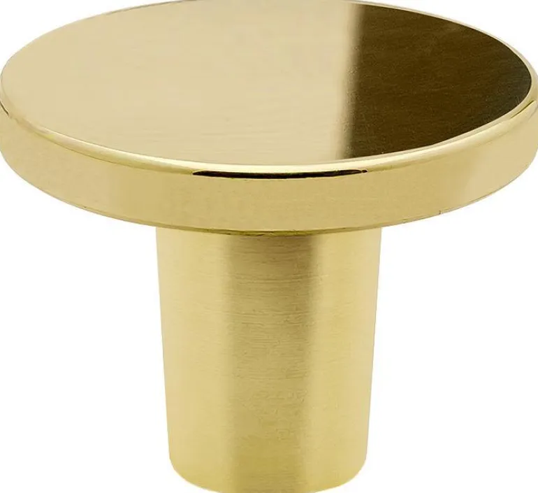 Kylpyhuoneen kaapin vedin, halkaisija 25 mm, valmistettu kiillotetusta messingistä tai kuparista. Vedin voidaan asentaa myös seinään ja käyttää koukkuna.