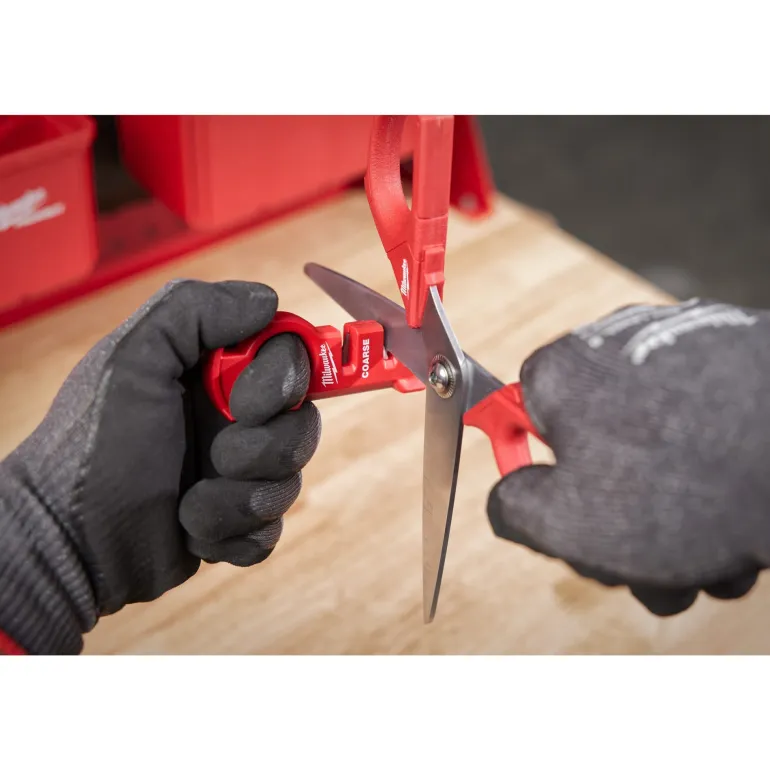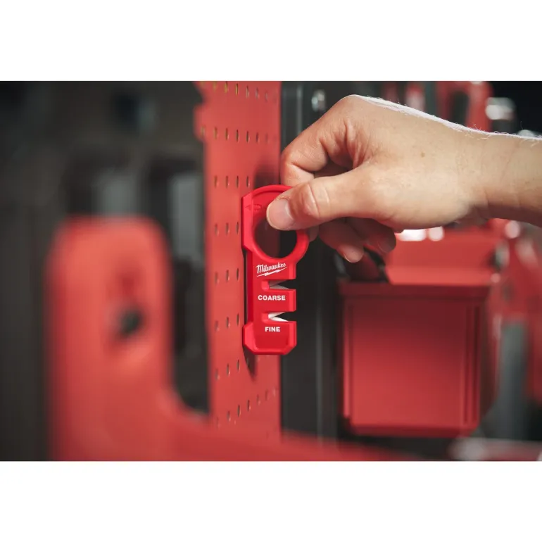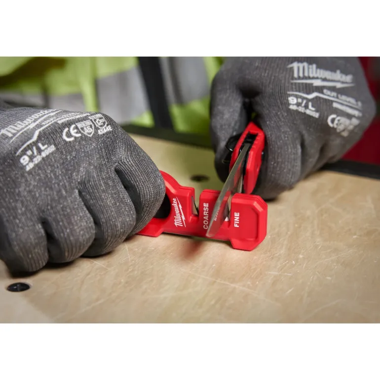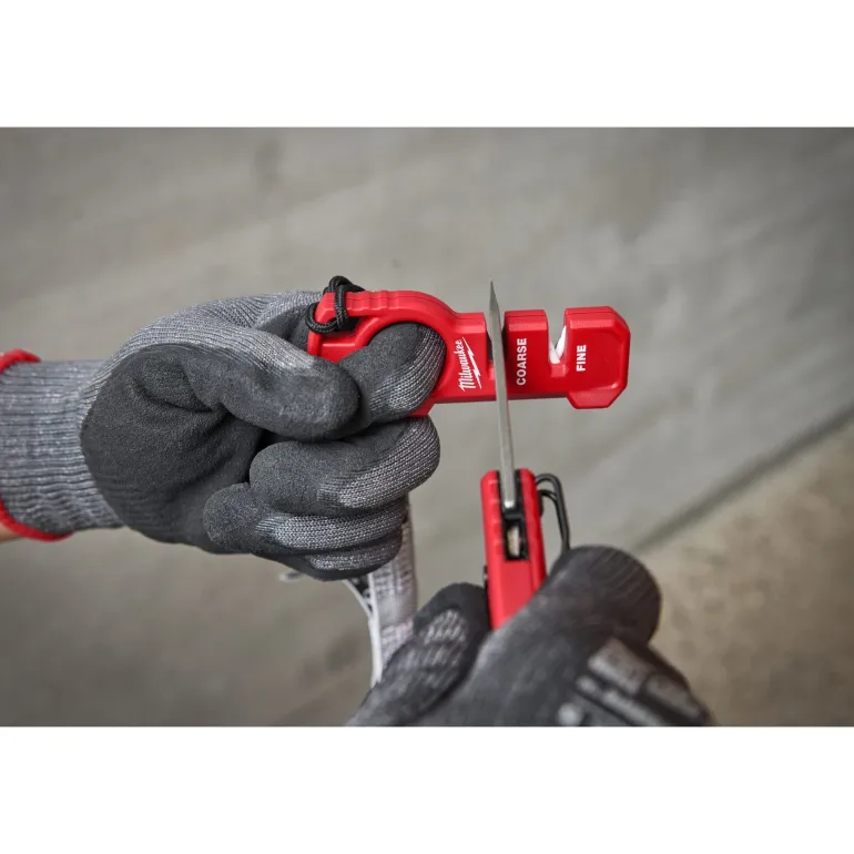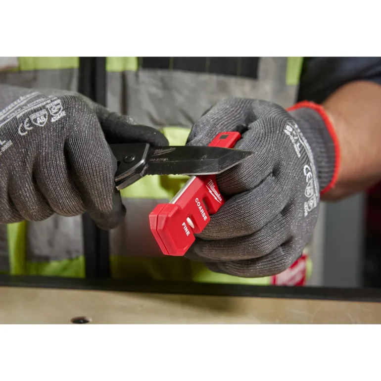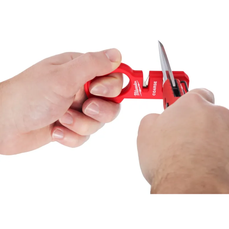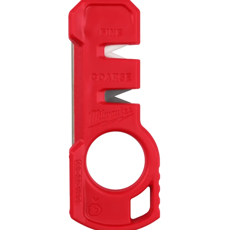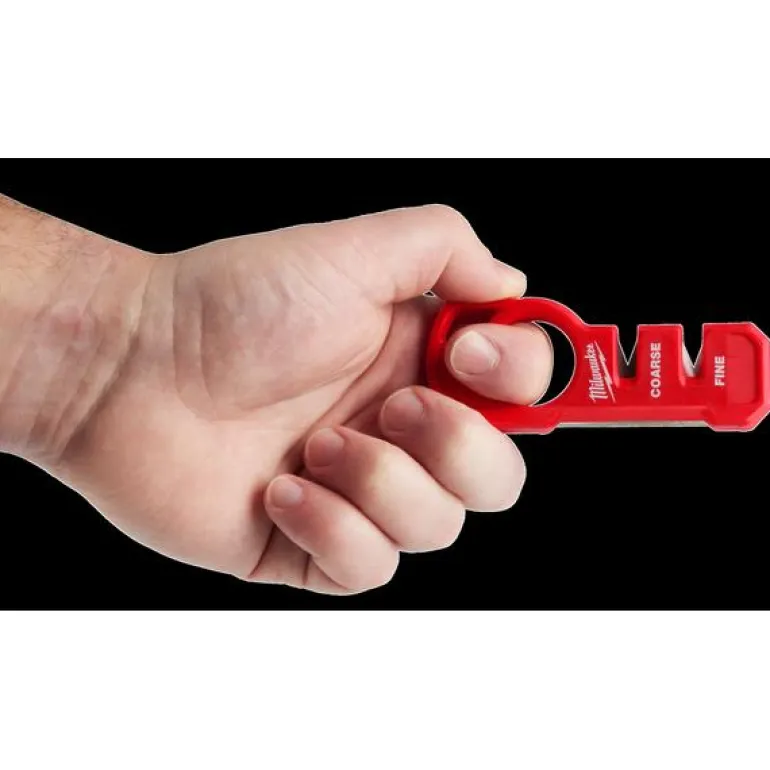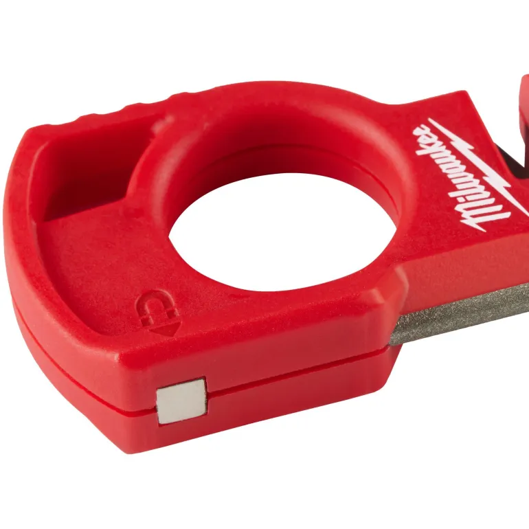 Kompakti veitsenteroitin, jossa on kolme teroitusvaihtoehtoa ja magneetti helppoa säilytystä varten.