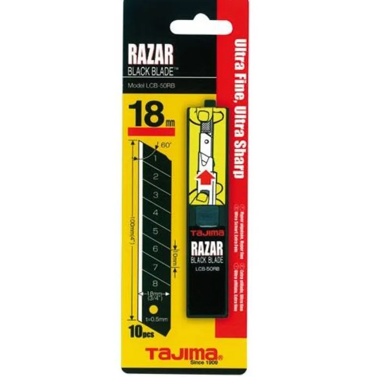 10 kpl pakkaus 100×18 mm teriä hienoon ja tarkkaan leikkaukseen. Sopii katkoteräveitselle Razor Black 18 mm.