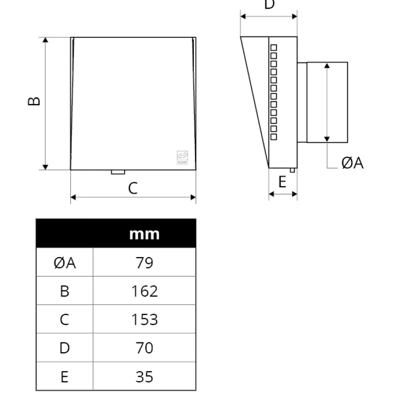 Sisäkierreventtiili suodattimella, kondensioeristys ja säätö portaattomaan ilmavirran säätöön. Venttiilin mitat ovat 153 x 162 mm ja se on valmistettu ABS-muovista.