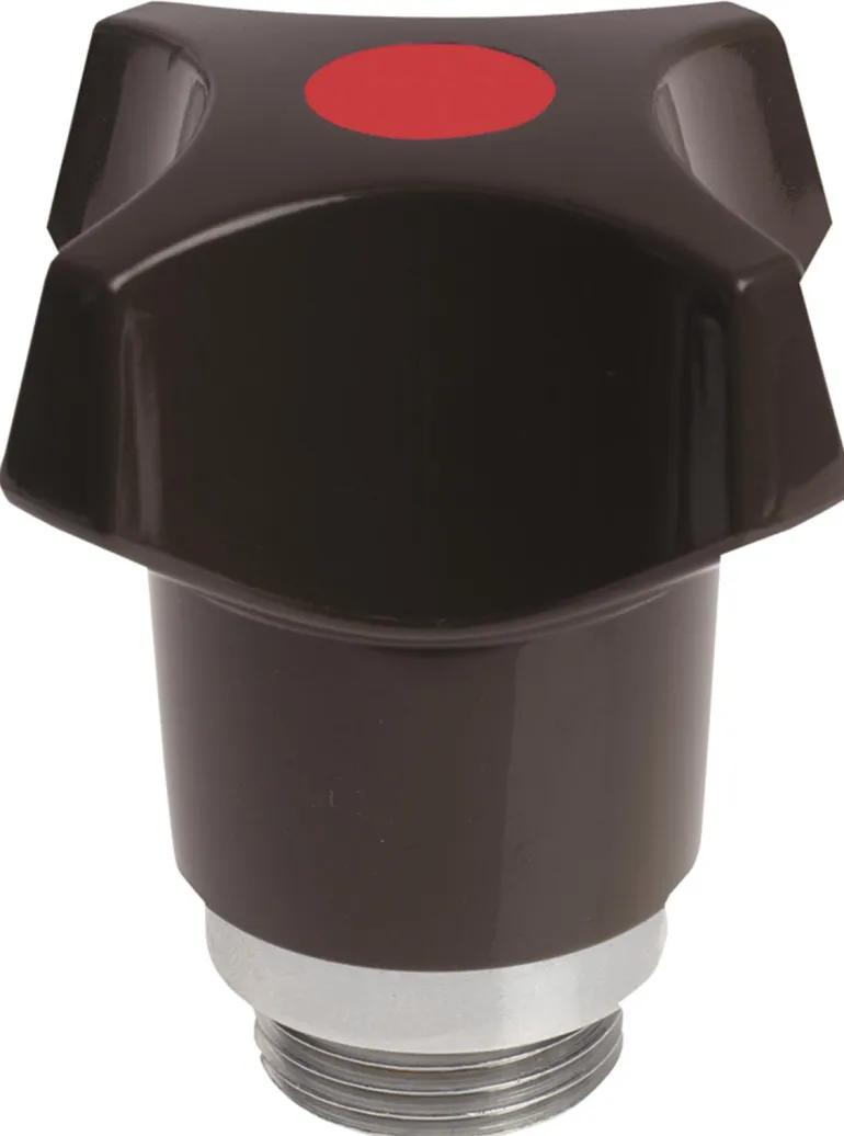 Punaisella merkitty venttiilin kahva piilosekantilla. Valmistettu muovista ja metallista.