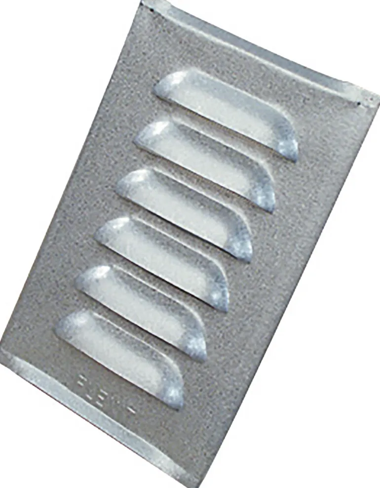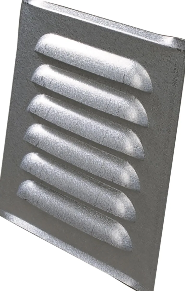 Venttiilisäleikkö asennettavaksi seinään. Säleikkö on ruostumatonta terästä ja soveltuu vaakasuoraan ulkopaneeliin.