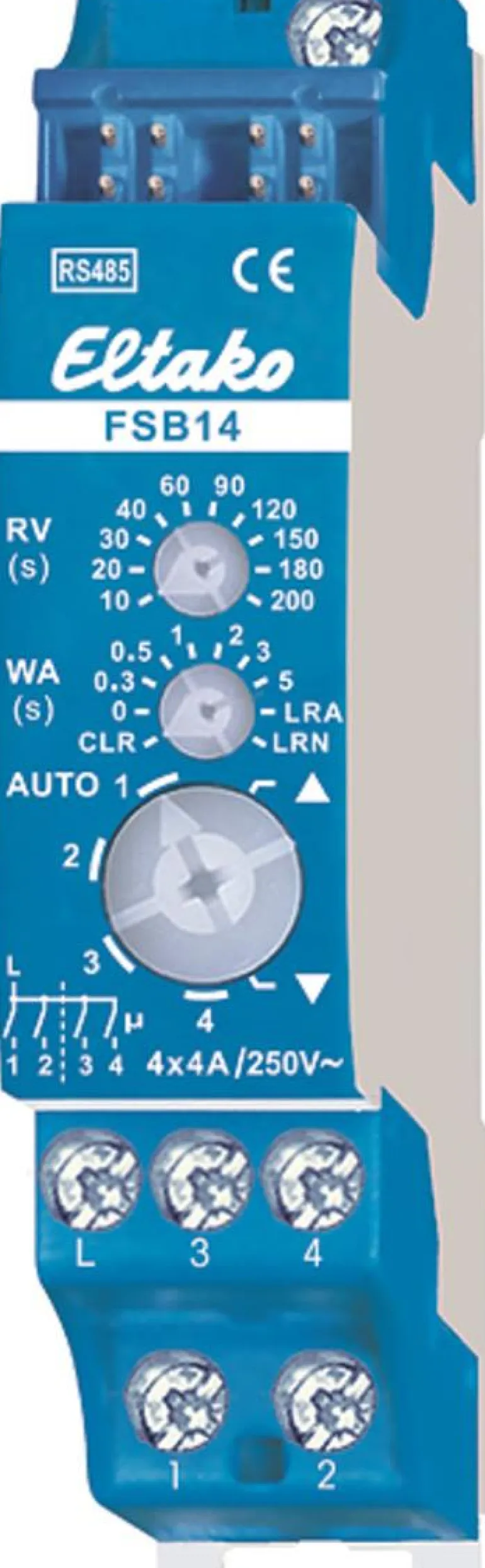 Kaksikanavainen markiisi/rullakaihdinohjain kahdelle 230 V vaihtovirtamoottorille. 2+2 NO-kosketinta 4A/250V AC, potentiaali erillään käyttöjännitteestä. Kaksisuuntainen versio. Liitäntä Eltako RS485-väylään. BUS ja virtalähde kytketään nopeasti sankoihin.
