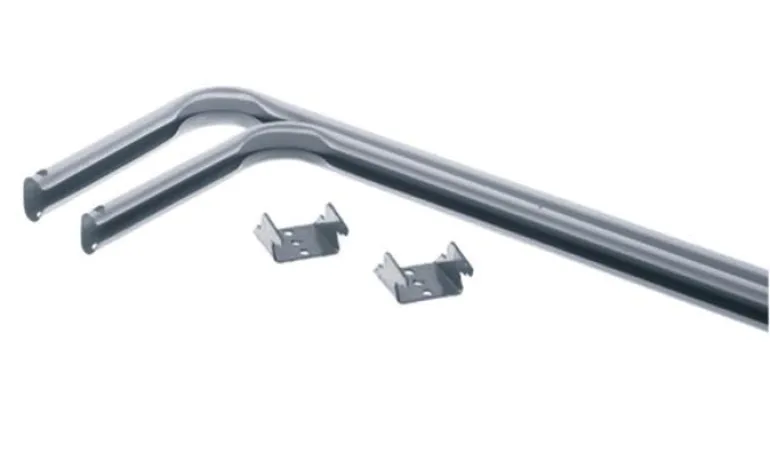 Yksittäinen teräsverhotanko pidikkeineen.