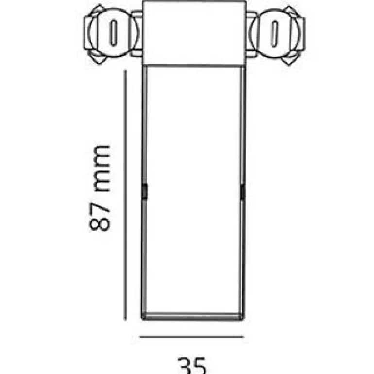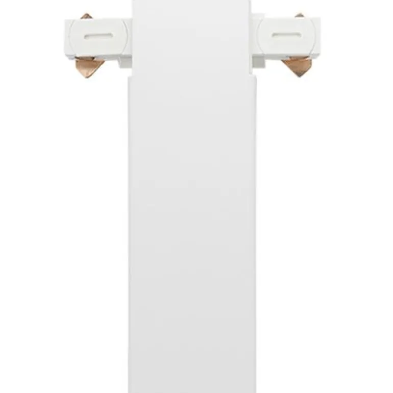 Valkoinen verkkoliitäntä T-liitäntään ZIP-kiskoon. Mitat 87 x 35 x 22 mm, pinta-asennukseen sisätiloihin. Eristysluokka I.
