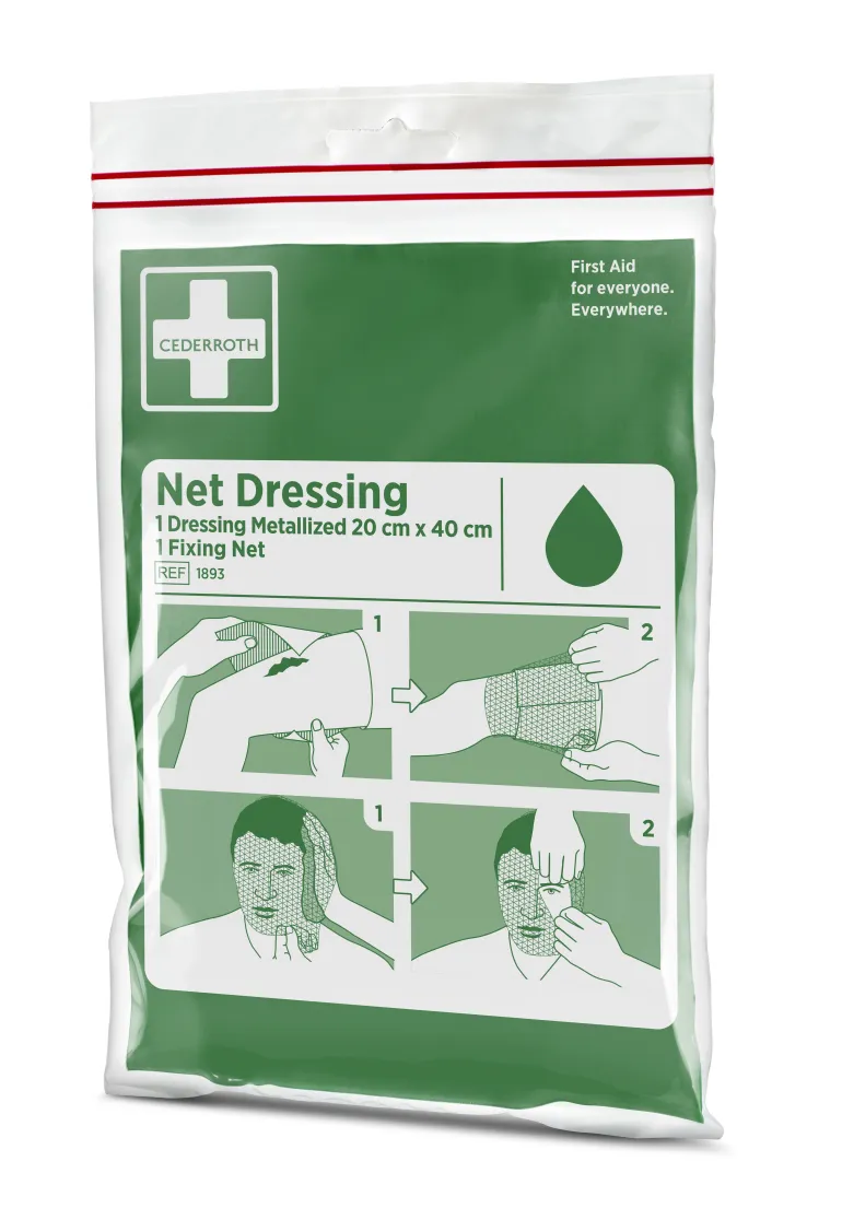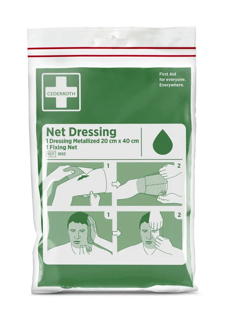 Pään vammoille tarkoitettu verkkoside, sopii myös siteeksi käsiin ja jalkoihin. Steriili haavaside, jonka toinen puoli on tarttumatonta, metalloitua kuitukangasta. Mukana verkko, joka pitää siteen paikoillaan.
