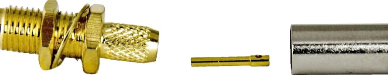 SMA-tyyppinen puristusliitin. Liitokset ovat erittäin korkealaatuisia kullattujen pintojen ansiosta, myös liitinnastat.