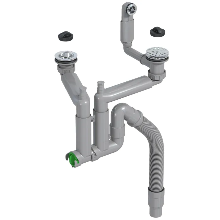Vesilukko Intra Smartloc A3, 2-altainen. Pohjaventtiilillä, ylivuotosarjalla, kahdella tulpalla ja siivilällä.