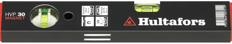 Hultafors HVP MAGNET on ammattilaisille tarkoitettu vatupassi, jossa on vankka alumiiniprofiili ja jonka mitat ovat 49×23 mm ja paino n. 650 g/m, alapuolella magneetit. Rikkoutumattomat lohkolibellit, erittäin läpinäkyvät ja kestävät. Vaakalibelli, jossa suurennuslasi ja itsevalaiseva heijastin.
