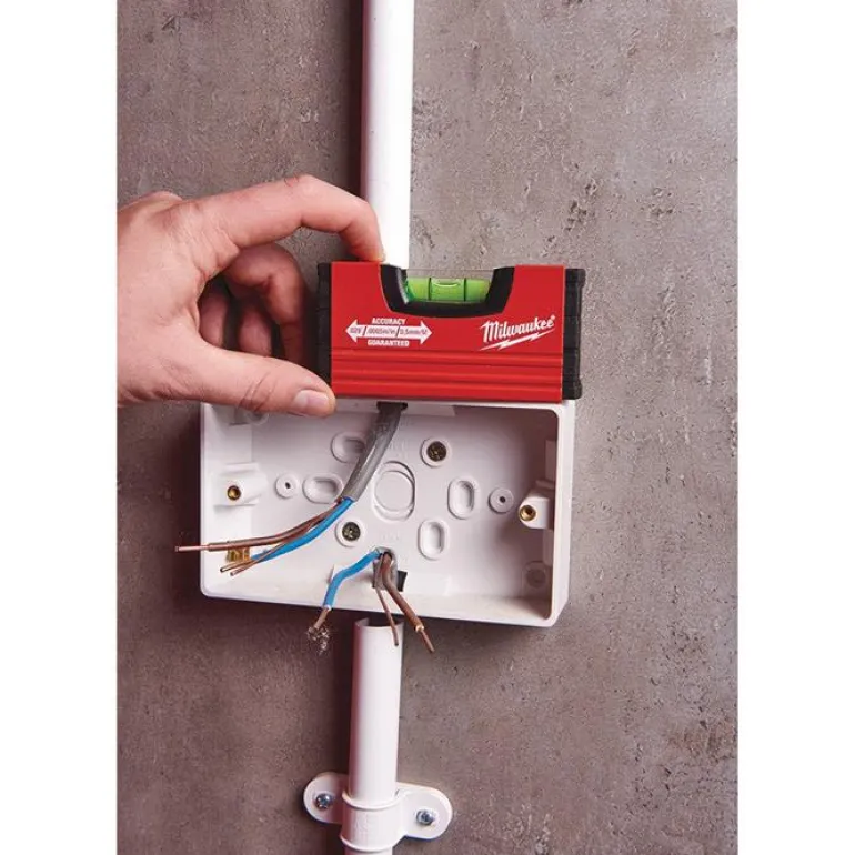 Milwaukee MINI on 10 cm vesivaaka, joka on pieni ja kevyt alumiinirakenteensa ansiosta. Tarkkuus 0,029°.