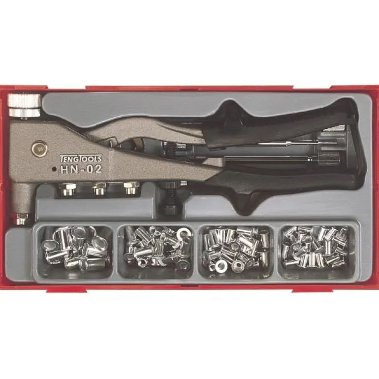 Teng Tools TTNR81 on 81-osainen vetoniittimutterisarja, jossa vetoniittipihdit ja asennustyökalu POP-nut M 3, M 4, M 5 ja M 6 sekä POP-nut kustakin koosta.