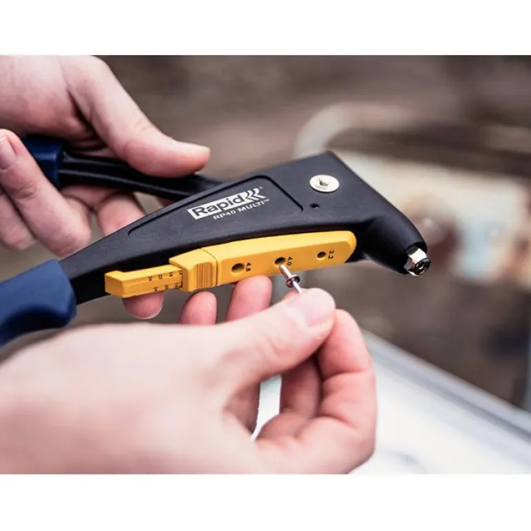 Rapid RP40 on vetoniittipihti, jolla teet vetoniittejä tehokkaasti ja ongelmitta. Ainutlaatuisen multikärjen ansiosta säästät aikaa ja vaivaa, kun sinun ei tarvitse vaihtaa kärkiä – kaikki 3,2–4,8 mm:n vetoniitit sopivat.