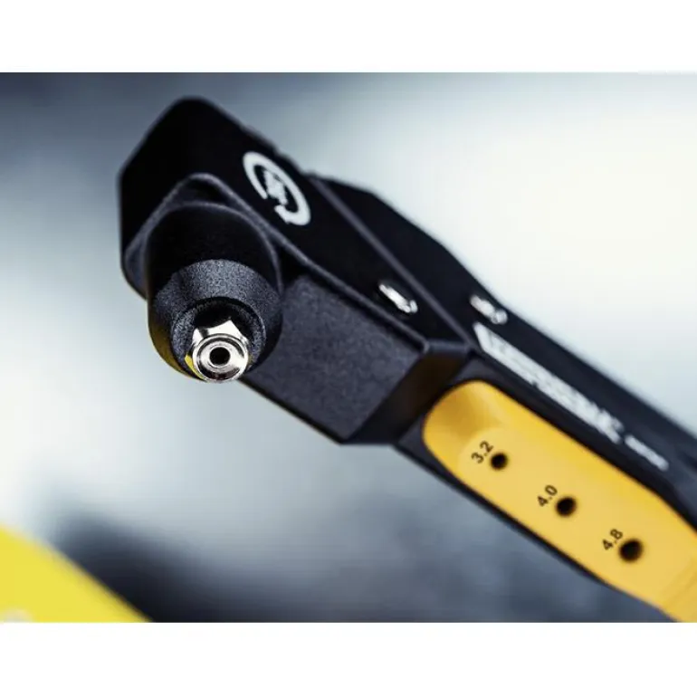 Vetoniittipihti kääntyvällä päällä, jolla teet vetoniittejä tehokkaasti ja ongelmitta. Ainutlaatuinen multikärki, johon käyvät kaikki vetoniitit 3,2–4,8 mm.