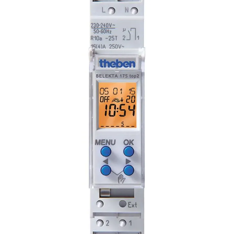 Viikkokello SELEKTA 175 Top2 ei ole riippuvainen ulkoisesta valoanturista. Valo syttyy ja sammuu sen sijaan maantieteellisten parametrien, pituus- ja leveysasteen mukaan. Kellon huoltotoiminto mahdollistaa huoltovälien valvonnan ja Päälle/Pois päältä -kytkentäajat ovat ohjelmoitavissa esimerkiksi yökatkoksia varten. Viikkoaikataululla ja lomaohjelmalla. SELEKTA 175 Top2:n kotelo ja eristysmateriaalit on valmistettu korkeita lämpötiloja kestävistä itsesammuvista termoplasti-materiaaleista.