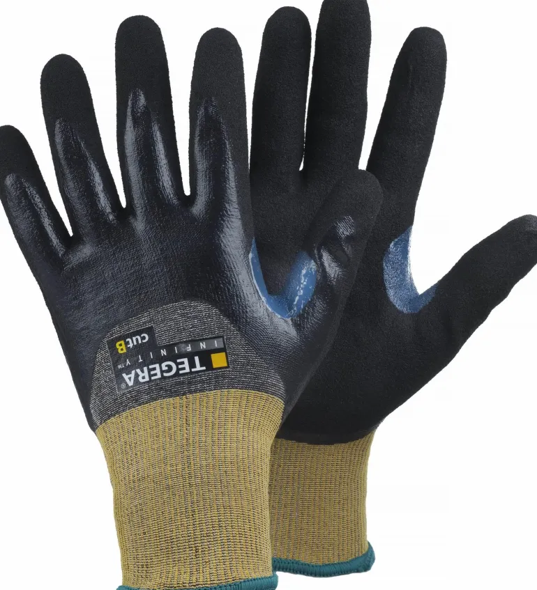 TEGERA® INFINITY 8806 on kätevät viiltosuojaluokan B työkäsineet, jotka sopivat hyvin tarkkuustöihin. Rystysestä pinnoitettu pehmeällä nitriilivaahdolla ja pinnoitettu kämmen, joka tarjoaa hyvää pitoa rasvaisilla ja öljyisillä pinnoilla. Suojaus kosketuslämmöltä 100 °C:seen saakka. Ihoystävällinen, Derma-test- ja Öko-Tex-sertifikaatit.