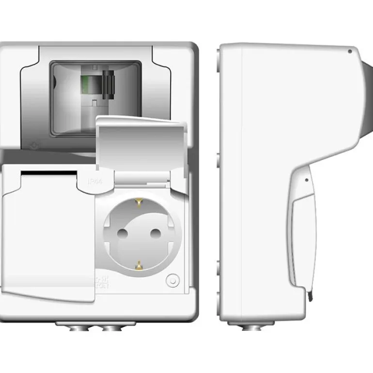 Maadoitetun ja kosketussuojatun 2-osaisen 16A/230V:n pistorasian ja 2-napaisen vikavirtasuojan yhdistelmä, jonka mitoitettu vikavirta on 30 mA. Vikavirtasuojan läpinäkyvä kansi helpottaa vikavirtasuojan tilan tarkistamista. Taajuus 50 Hz. Kosketussuojattu.