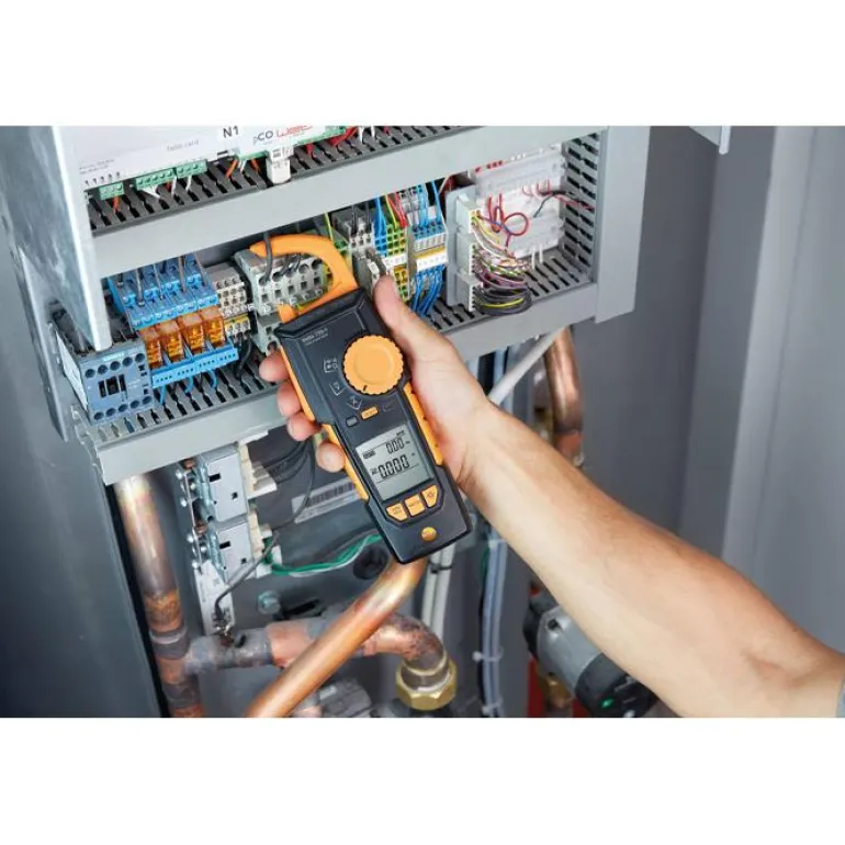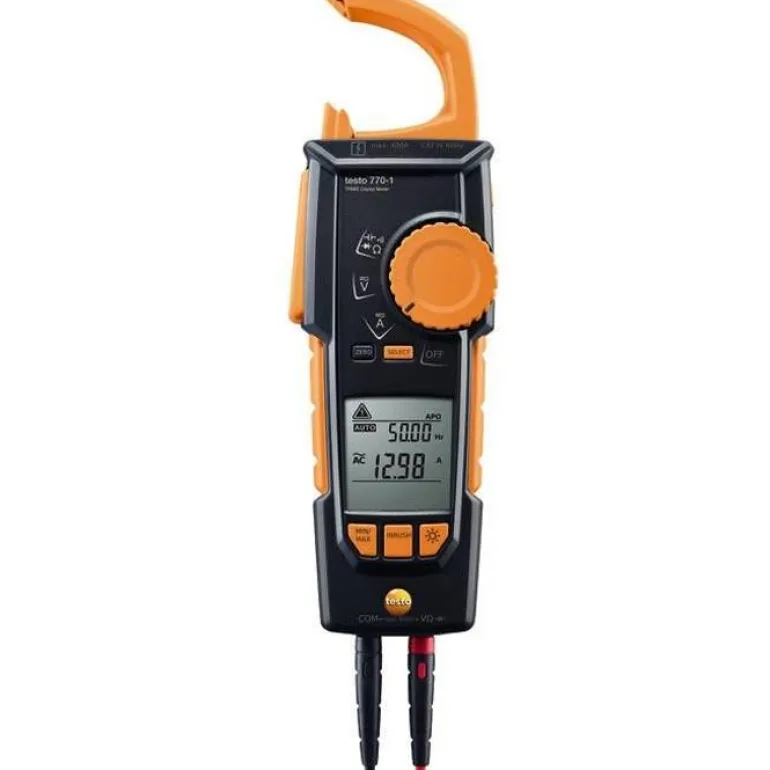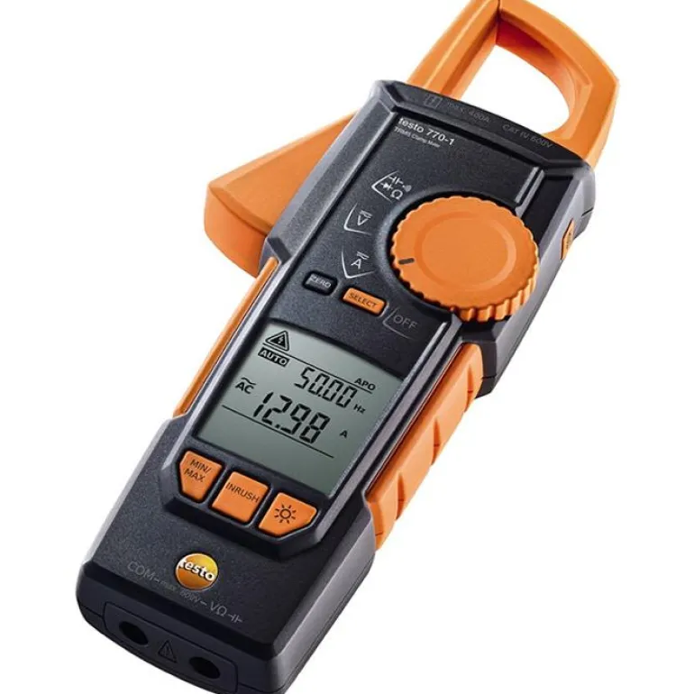 Testo 770-1 -TRMS-virtapihti on ihanteellinen kosketuksettoman virran mittaamiseen laitekaapeista. Yksi tarttumiskynsistä voidaan vetää kokonaan laitteeseen, ja tarttumismekanismin ansiosta kaapeleihin on helppo tarttua ahtaissa kytkentäkaapeissa. Mittausparametrien automaattinen tunnistus takaa luotettavan mittauksen: virta- ja jännitealueella kaikki kolme laitetta voivat havaita DC- ja AC-virran. Ne voivat myös automaattisesti valita muita parametreja, kuten resistanssi, jatkuvuus, diodit ja kapasitanssi.