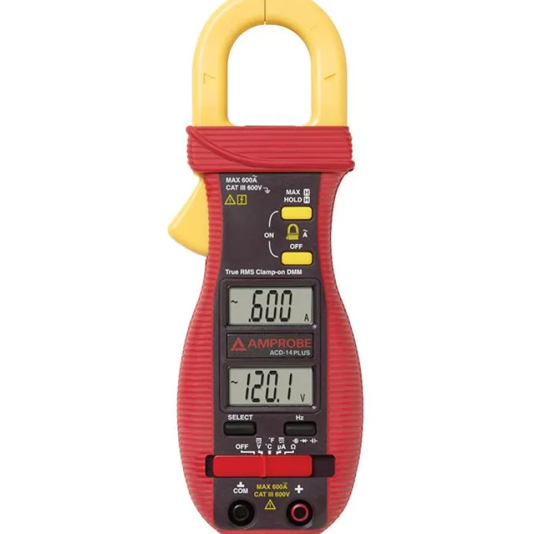 Beha-Amprobe ACD-14 PLUS -virtapihdit, jotka antavat täydelliset mittaustulokset LVIS- ja elektroniikkatöissä Ohuet leuat sallivat mittauksen vaikeapääsyisissä paikoissa ja kaksoisnäytöt mahdollistavat sekä virran että jännityksen näytön yhtäaikaisesti