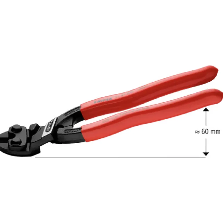 Voimaleikkurit 200 mm, korroosiosuojatut, kahvoissa muovikuoret sekä ura, joka helpottaa paksujen johtimien leikkaamista. Pää 20° kulmassa, kulmassa yksipuolinen liitoslaatta ja sivuleikkaus mahdollistaa leikkaamisen melkein samassa tasossa ympäröivän tason kanssa, käsillä vapaa tila.