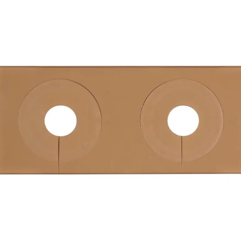 Ruskea jaettava vulk-peitelevy putkille 18–28 mm Dy. Mitat ovat 124 x 54 mm ja siinä on kaksinkertainen malli kahdelle putkelle (C/C-etäisyys 60 mm).