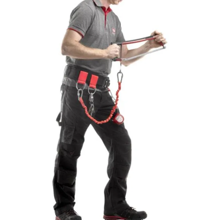 Turvavyö, joka on varustettu metallisoljella, jossa on optimaalisen turvallisuuden takaavat kaksinkertaiset avauspisteet. Vyö on yhteensopiva FACOM SLS -tarvikkeiden kanssa ja vyötärön koko on 100-140cm.