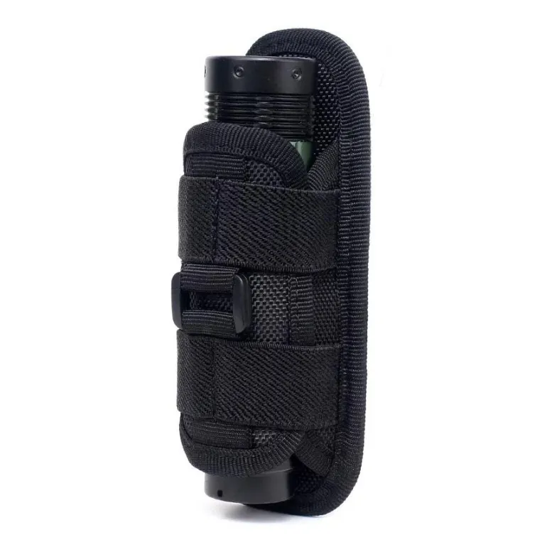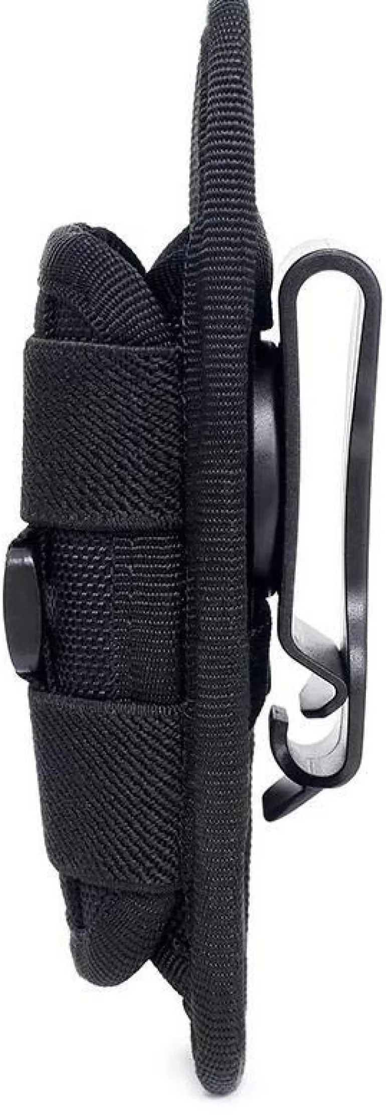 Joustava kotelo, sopii useimmille suurille ja pienille taskulampuille. Mukana 360° kääntyvä kestävä vyöklipsi, joka on asetettavissa 12 asentoon.