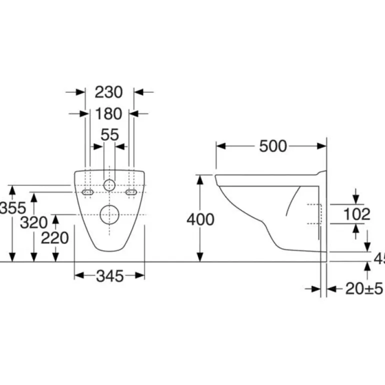 Seinään kiinnitettävä wc-istuin ilman kantta. Minimalistisesti muotoiltu, helppo pitää puhtaana. Kuormitustestit osoittavat, että istuin kestää jopa 400 kg:n painon. Seinäasennuksen pulttireikien mitat 180/230 c/c.