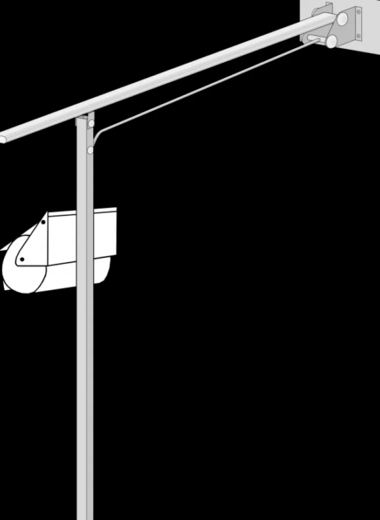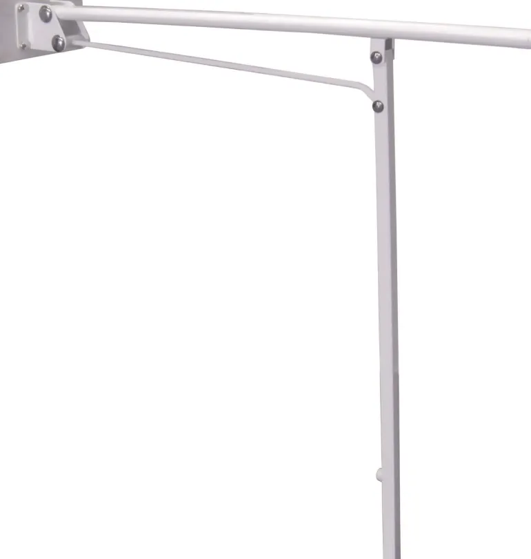 WC-käsituki tukijalalla, voidaan taittaa seinää vasten ja lukittuu itsestään yläasentoon. Tuki on valmistettu teräksestä ja pinta jauhemaalattu.