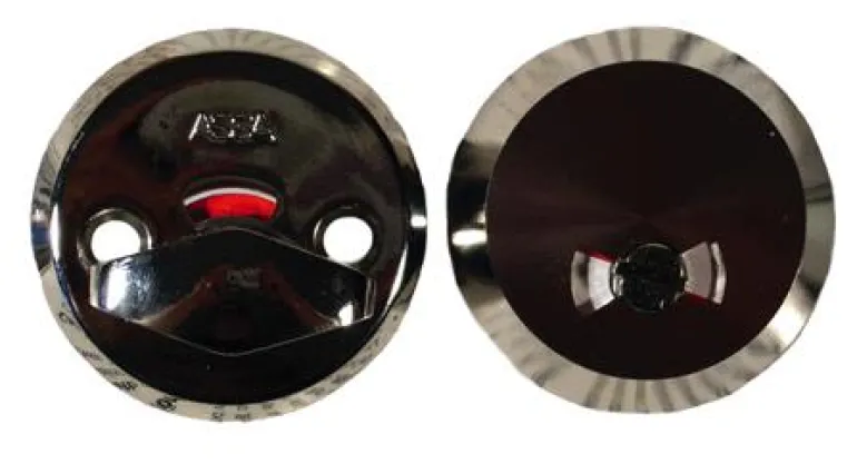 ASSA 265-50 WC-lisävarusteet, halkaisija on 50 mm. Punainen/valkoinen merkintä ulko- ja sisäpuolella. Mukana läpimenevä ruuvi ja hylsymutteri. Vain 565-tyyppisille moduulilukoille.