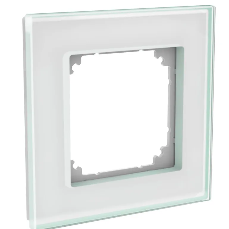 Tarkka yhdistelmäkehys kiinteää lasia upotettavaan asennukseen IP20. Pystysuoraan tai vaakasuoraan asennukseen. Kristallinvalkoinen